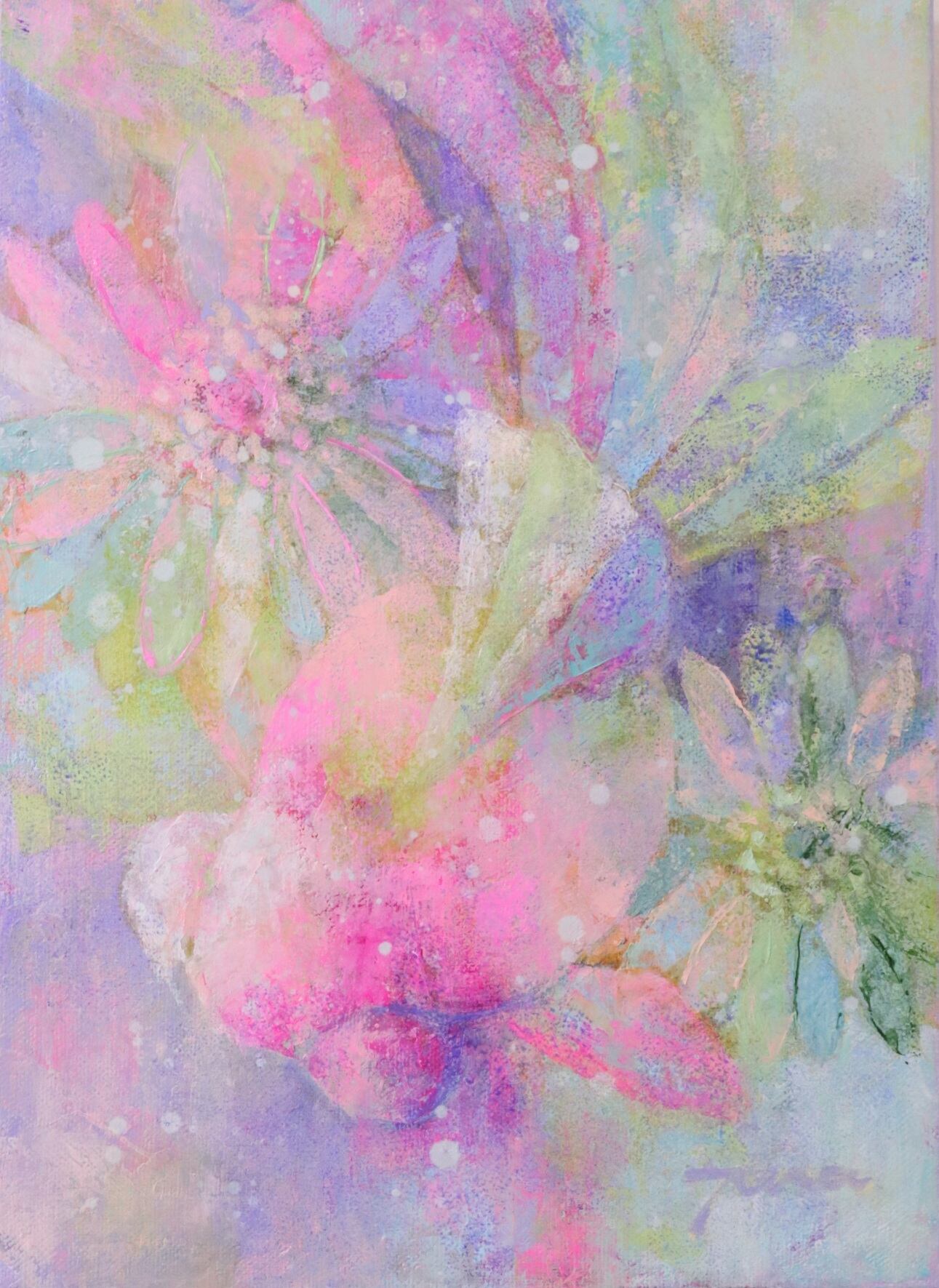 金魚とガーベラのスケッチを元に半抽象画に仕上げました。
