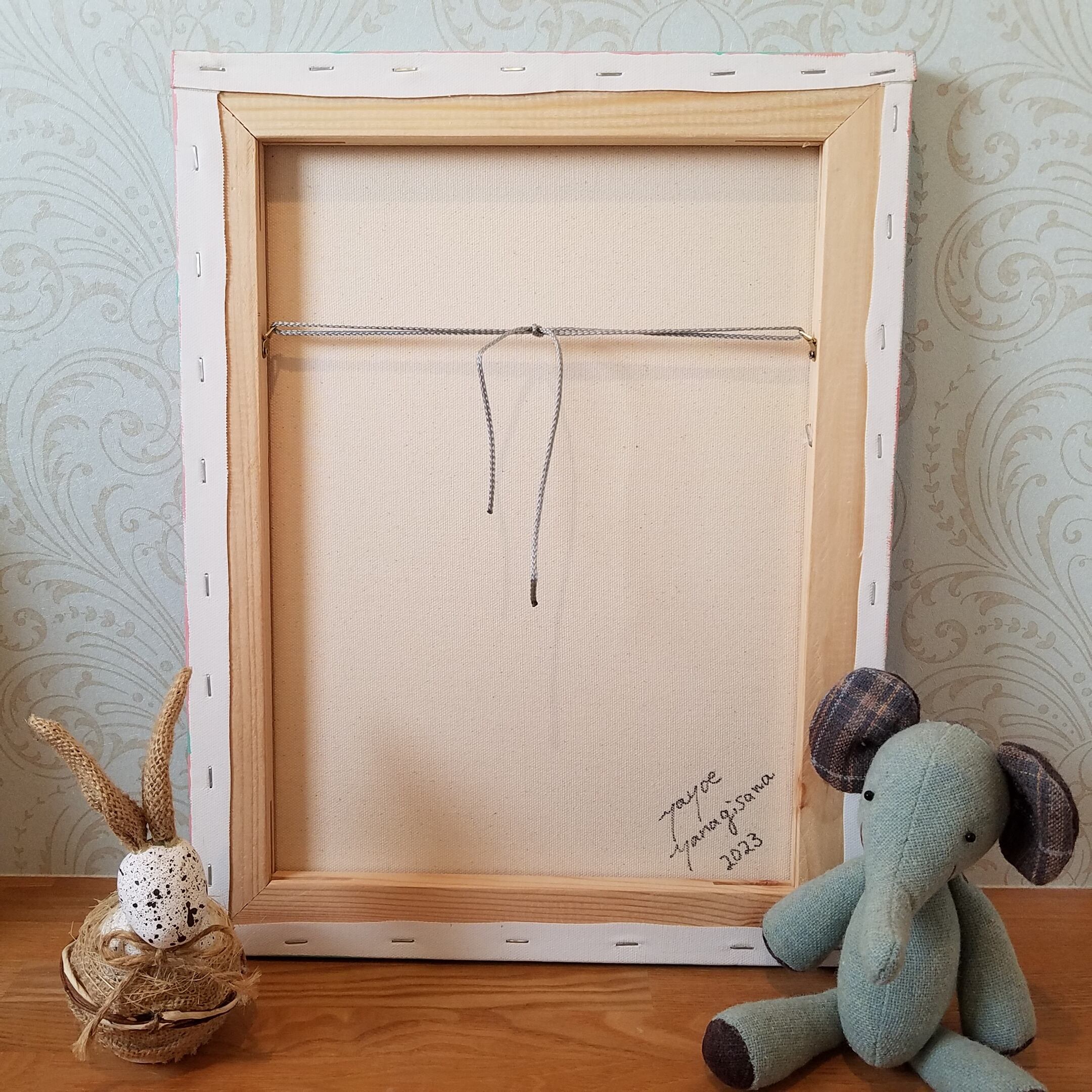 薄く溶いた油絵具を何層にも重ねて描いてあります。