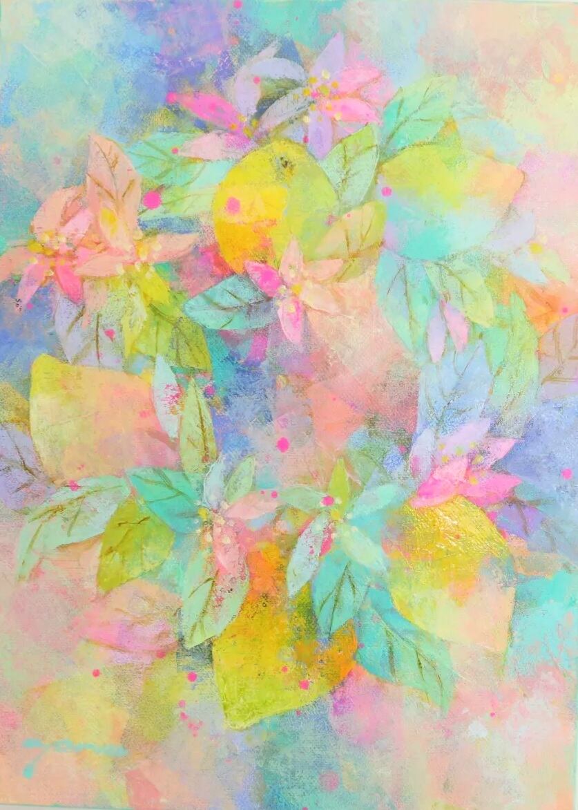 ・薄く溶いた油絵具を何層にも重ねて描いてあります。色の重なりの美しさを感じていただけたら、嬉しいです。