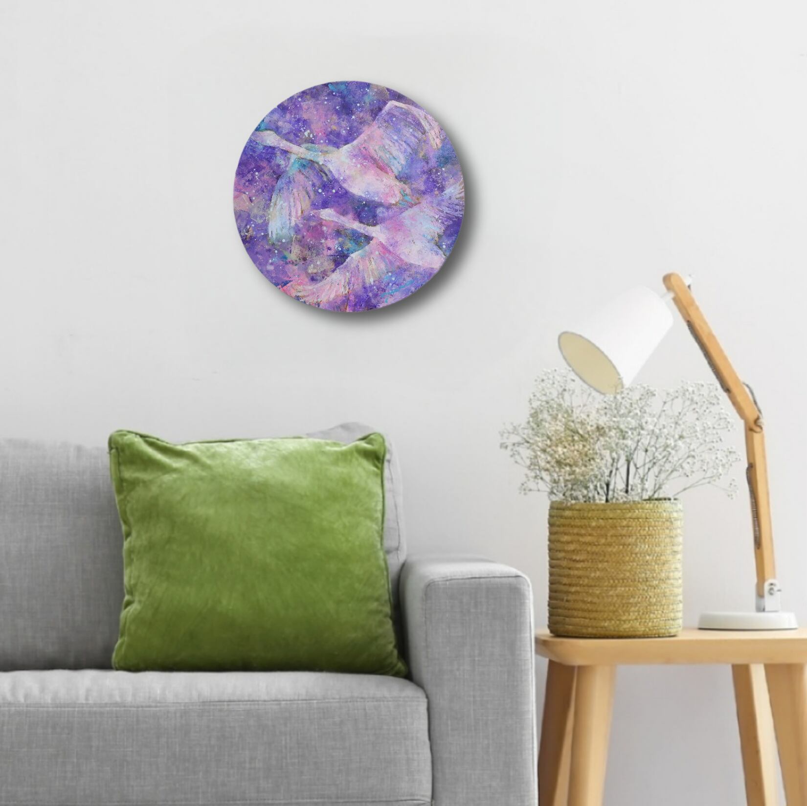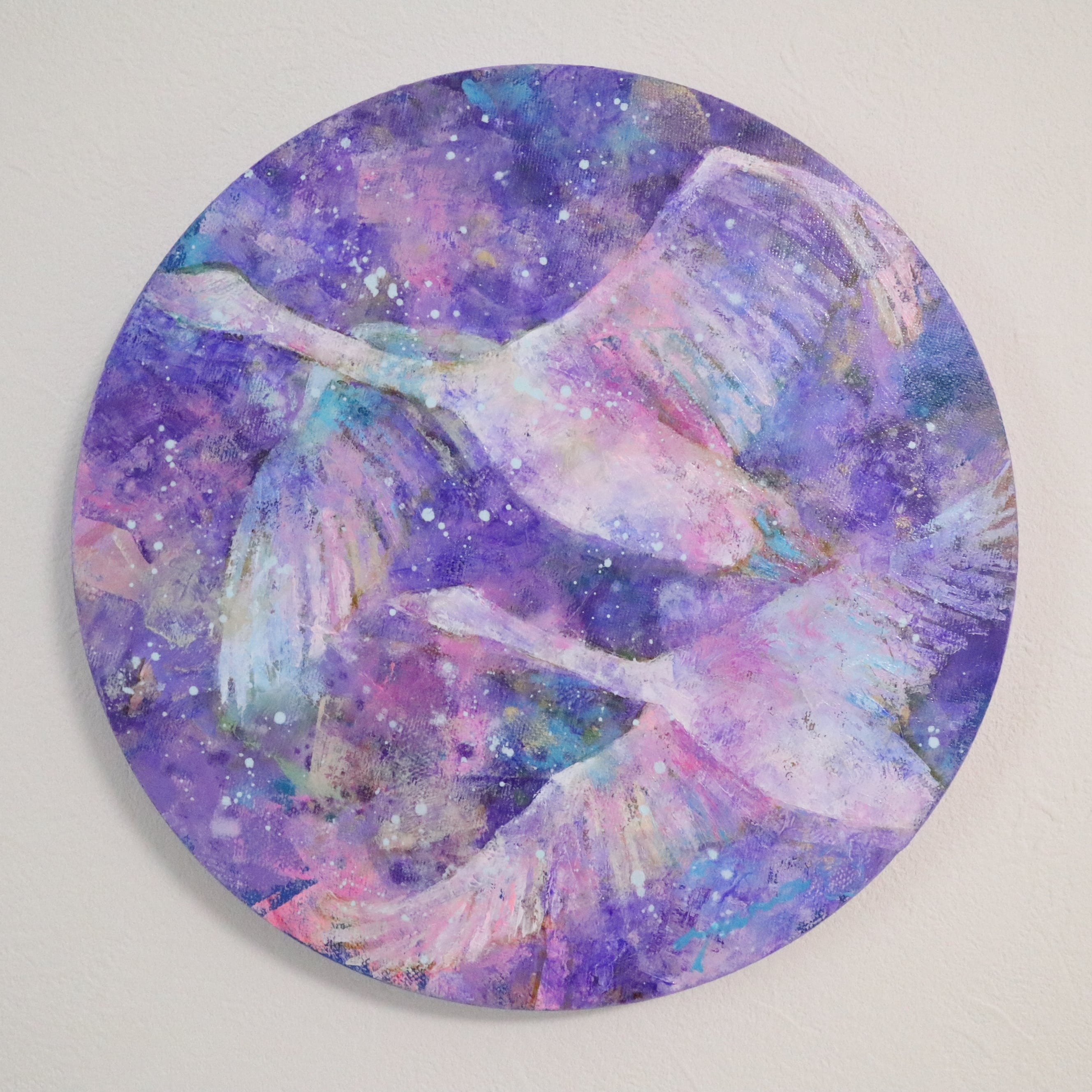 秋の夜、鳴きながら飛んで行く白鳥の群れを見ました。そんな心に残る光景を元に描いてみました。